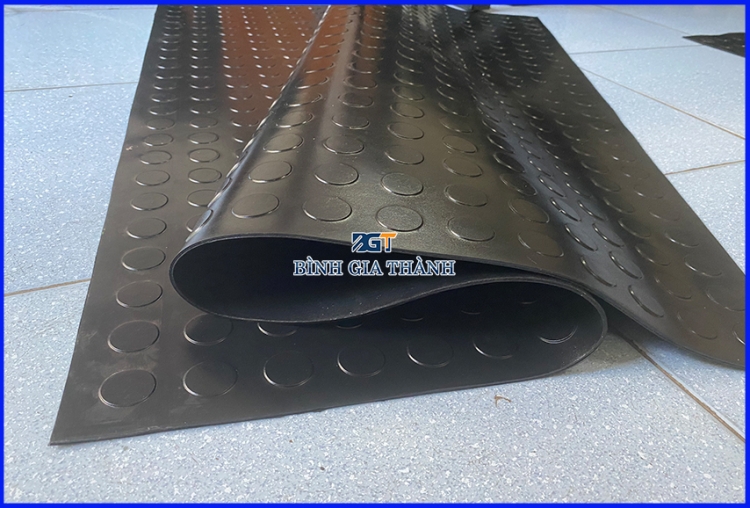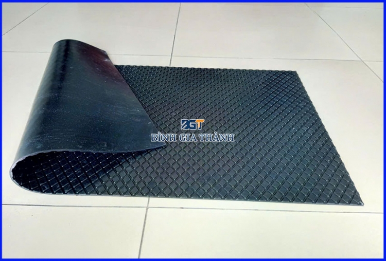 - Tấm được trải sàn xe hoặc trải nền vừa có tác dụng chống trơn, vừa chống va đập, chống rung, chịu lực, chống ồn. Sản phẩm được ứng dụng tại các nhà máy, kho xưởng, phòng tập gym, trải sàn ô tô, trải sàn tàu thuyền, sàn nhà hàng, khách sạn, cao su chống mỏi chân, cao su trải bàn thao tác, trải sàn để công nhân đi lại, trải sàn chuồng trại, sàn cầu thang hay trải quanh các sân tập thể thao như sân băng, sân bóng chuyền, sân cầu lông, ...