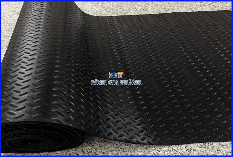 - Khi làm việc trên nền bê tông, nền gạch hoặc nền đá có bề mặt trơn nhẵn hay đặc biệt trong môi trường dầu nhớt thì rất dễ xảy ra tình trạng trơn trượt dẫn đến tai nạn lao động. Vì thế, cần trải 1 lớp cao su có vân chống trơn trượt để tạo độ an toàn, chắc chắn khi hoạt động nhằm tăng hiệu quả công việc cũng như năng suất lao động.