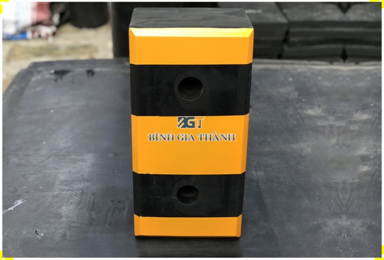 - Giảm chấn cao su 150x200x400 (mm) được lắp đặt ở thành tường các bến bãi bốc xếp hàng hoá, chống va đập khi xe tải, xe container lùi vào kho hàng.