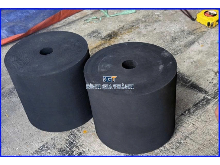 Thường được đúc từ cao su tự nhiên (NR) hoặc cao su tổng hợp (SBR, NBR) với hình trụ tròn hoàn hảo. Hình dáng tròn giúp phân bổ lực ép đều 360 độ xung quanh tâm, tránh hiện tượng tập trung ứng suất tại các góc cạnh như các loại đế vuông.