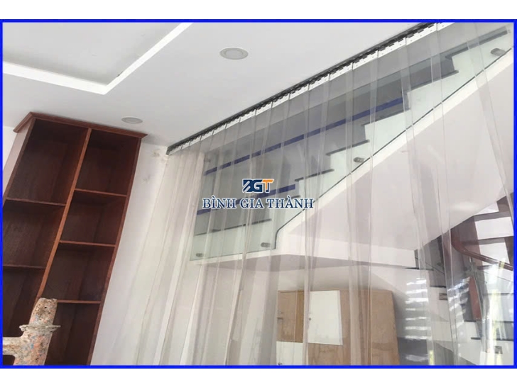 Kiểu lắp cố định giúp các dải nhựa luôn rủ thẳng, tạo ra một rào cản vật lý ngăn cản bụi bẩn từ môi trường bên ngoài hoặc từ các khu vực chưa vệ sinh xâm nhập vào khu vực vô trùng. Độ bền của hệ thống thanh treo cố định cho phép màn nhựa chịu được tần suất xe kéo tay và người đi lại liên tục mà không bị xô lệch hay hỏng hóc kết cấu treo.