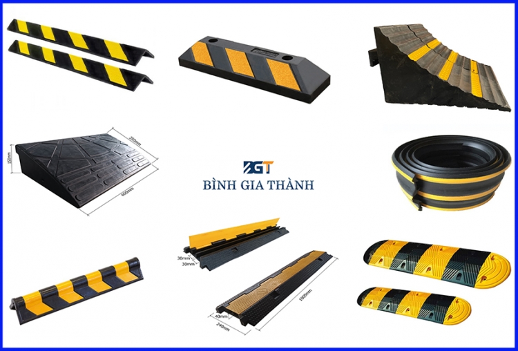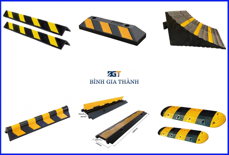 - Cao su cầu đường: Gờ giảm tốc, chặn bánh xe cố định, cục chặn lùi xe, các loại trụ tiêu cao su, cọc tiêu chóp nón,....