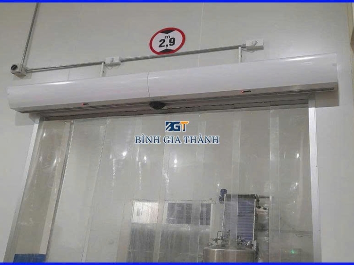 - Hệ thống điều khiển: Thường có điều khiển từ xa với các mức tốc độ gió (yếu, trung bình, mạnh) để điều chỉnh phù hợp với chiều cao cửa và lưu lượng người qua lại.
