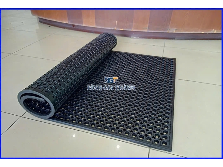 Cấu trúc dạng lỗ hoặc rãnh sâu cho phép nước thoát đi nhanh chóng, không đọng lại thành vũng, giúp bề mặt luôn khô ráo và sạch sẽ. Điều này đặc biệt quan trọng tại các hồ bơi công cộng hoặc khu vui chơi trẻ em, nơi lưu lượng người chạy nhảy rất lớn.
