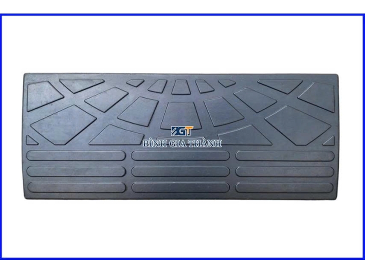 Đây là dòng sản phẩm phổ biến và bền bỉ nhất trong môi trường công nghiệp. Được sản xuất từ cao su tổng hợp hoặc cao su tái chế mật độ cao, tấm dốc cao su có khả năng chịu tải trọng cực lớn (từ xe máy đến xe container 50 tấn). Đặc tính đàn hồi của cao su giúp giảm chấn và triệt tiêu tiếng ồn hoàn toàn khi xe cán qua. Bề mặt thường được đúc các vân nổi chống trượt sâu, đảm bảo an toàn tuyệt đối trong điều kiện mưa ướt hoặc dính dầu mỡ.