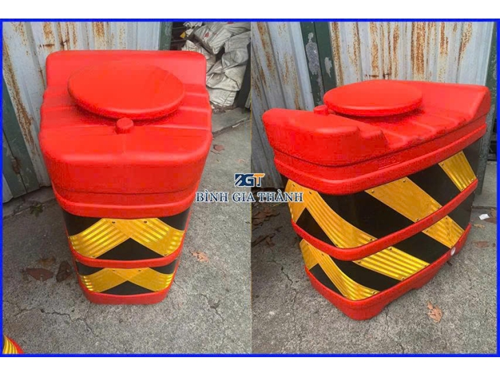 - Màng phản quang chuyên dụng: Thân thùng được dán các dải phản quang cường độ cao (loại tổ ong hoặc kim cương). Điều này giúp tài xế nhận diện được vị trí dải phân cách từ khoảng cách xa vào ban đêm khi có ánh đèn pha chiếu vào, giúp họ kịp thời điều chỉnh hướng lái.