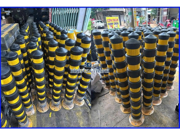 - Lớp bọc ngoài: Thường được bọc một lớp cao su đàn hồi hoặc cao su đặc bên ngoài lõi thép. Lớp cao su này có tác dụng hấp thụ lực va chạm và giảm thiểu hư hại cho cả trụ và phương tiện va chạm.